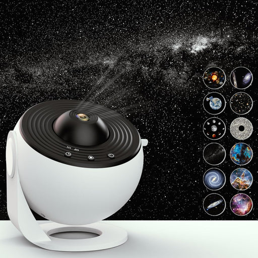 View full detailsSunbox Star Projector,Planetarium Projector Galaxy for Bedroom,360 Degree Rotation Night Light with 4K Replaceable 12 Discs Large Projection Area Sky Kids Adults Gifts, White (BL-DQY02)