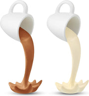 2 pcs floating coffee cup magical pouring sprinkling water splashing fun coffee cup sculpture art decoration, suitable for home, kitchen, kitchen decoration (Coffee&Cream)