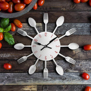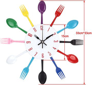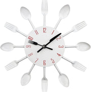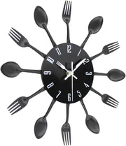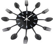 Timelike 3D Removable Modern Creative Cutlery Kitchen Spoon Fork Wall Clock Mirror Wall Decal Wall Sticker Room Home Decoration (Black)
