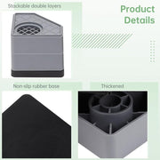 [HARDNESS RUBBER MATERIAL] Appliance stabilizer feet gray layer is made of durable PP. The black layer is rubber, which has anti-friction, non-slip and soft properties, shock and noise cancellation, easy install, floor protection, effectively protecting any smooth tile and floor surface. Washer and dryer anti-vibration pads raise furniture and home appliances by a few centimeters is for effectively preventing moisture and better ventilation