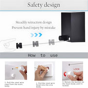 ???Anti-off Designed?This retractable clothesline with anti-off U-shaped buckle, rotary lock switch, can lock any length, firm and stable, dry clothes without worry, built-in recycling gear, uniform retraction design, plastic coated with string to avoid injury.