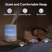 - 23dB Whisper-Quiet Operation: No need to tolerate hums and whistles. Sleep undisturbed with the ultrasonic quiet humidifier. The ability to turn off all lights during operation means no more sleep interruptions from annoying light pollution. Ideal for light sleepers.