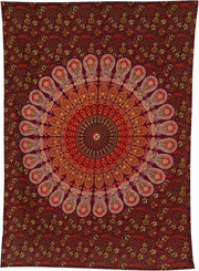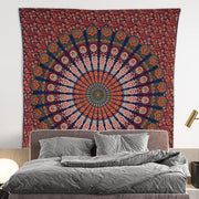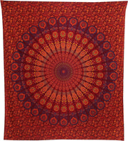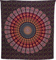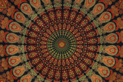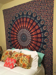 Bless International, Indian Wall Hanging Psychedelic Hippie Bohemian Peacock Mandala Tapestry Bed Sheet Gold Pink Blue King 225x265cm
