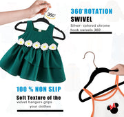 【Kids Velvet Hanger 50 Pack】: These elegant velvet hangers add class to your kids wardrobe with each hanger measuring 31.5*21*0.5 cm making it oddly pleasing to the eyes. Velvet non slip hangers having 360 degree swivel, shiny hooks and notched shoulders that will make hanging clothes a simple pleasure.