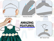 GVTECH Kids Hangers Velvet, [50 Pack] Children Cloth Durable Baby Hangers for Closet - Perfect Infant Toddler Kid Hanger for Everyday Use, Non Slip 360° Hooks for Shirt, Pant (50 Pack, Grey)