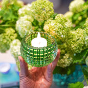 Votive Candle Holder: Glass candle holder measures approximately 3 inches in diameter (top), approximately 2 inches inside diameter (bottom), and measures 2.6 inches tall.It also works great with regular votive candles, flameless LED lights, tealight candles less than 1.7 inches in diameter (not included), or filled with flowers, herbs, or candies