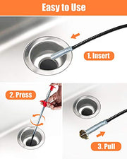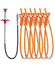 LONGGUI 25in & 24in Drain Clog Remover Tool (7pcs), Clears Hair Clogs in Sinks, Tubs & Toilets