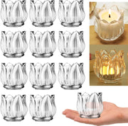 ⭐【Clear Tealight Holder Dimension】: 2 X 1.4, 12 count in total. They are especially for tea light style candles, small votives and Led light. The clear color gentles the light from the flames without blocking too much light.