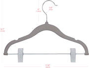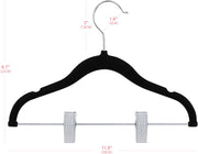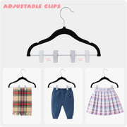 [Adjustable Clips]: The 2 metal clips of the kids velvet hanger can both be moved and angled at will within 10.5'' (26.7 cm). The clothes hangers can adapt to different sizes of clothes, you don't have to change the hanger as often as your child grows.