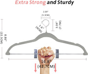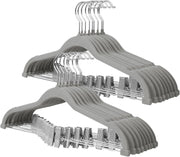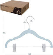 [Baby Velvet Hangers]: The 11.8'' x 8.7'' (30 x 22 cm) velvet baby hangers are made of ABS plastic and soft velvet. Each hanger comes with 2 metal clips, and the PVC rubber on the end of the clips prevents your clothes from leaving unsightly marks.