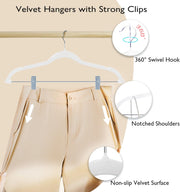 [Space saving]: The 0.24'' (0.6 cm) slim felt pants hanger maximizes your closet space and keeps your clothes neat and organized. The 360° swivel hook at the top of the hanger makes hanging and accessing clothes more convenient and flexible.