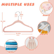 [NOTCHED SHOULDER]: Our kids velvet hangers with curved edge specialize in keeping all kids skirt , spaghetti shirt, and any kids clothes with straps to stay in their place.