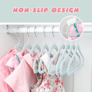 [VELVET SURFACE]: Premium velvety surface feels so smooth and soft to touch as well as increases the friction between baby clothes and hangers, which prevents clothes from slipping off.