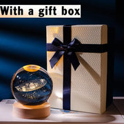 NALACAL 3D Planet Crystal Ball Night Light for Valentines Day, Space Galaxy With Wooden Base, 3D Engraved Solar System With LED Light Base for Kids, Gift for Valentines Lovers