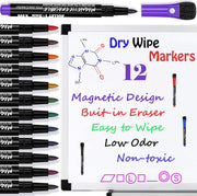 NALACAL Whiteboard Markers, Dry Wipe Pens, White Board Markers Erasable White Board Pens Colour, Magnetic Whiteboard Pens with Eraser, Thin Dry Erase Marker Fine Point, Teacher Supplies(12 Pack)
