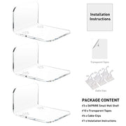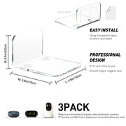 OAPRIRE Acrylic Floating Wall Shelves Set of 3 for Security Cameras, Baby Monitors, Speakers - Universal Small Wall Shelf with Cable Clips, 10-Piece Strong Tapes, No Drill (Clear)