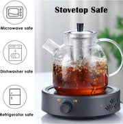 - ðŸµMICROWAVE & DISHWASHER SAFE:These features make this premium and high quality borosilicate glass teapot practical for use in any setting. Why not put it on any gas or electric pottery stovetop (NOT apply to induction stove) and use it as a kettle? You can heat or reheat your tea in the microwave as a quicker alternative. All components of the glass teapot can be washed in the dishwasher, making tea hosting a breeze. Make your tea however your heart desires and bring out your inner tea enthusiast.