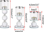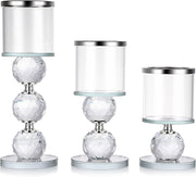 OwnMy Set of 3 Crystal Glass Candlestick Holders Pillar Candle Holders with Glass Covers, Modern Clear Glass Tea Light Candle Sticks Votive Candle Stands for Table Centerpiece Wedding Decor (Silver)