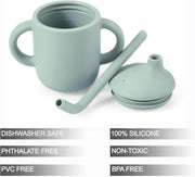 【NON-SLIP】 Simple, elegant and quipped with handles and a soft silicone straw, our training cup is the perfect way for little ones to learn how to drink like a big kid! When they are ready to drink from an open cup, simply remove the lid and straw