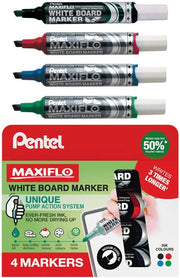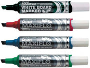 Pentel 5.7Mm Chisel Tip Wallet 4 Maxiflo White Board Liquid Ink Marker - Black/Red/Blue/Green