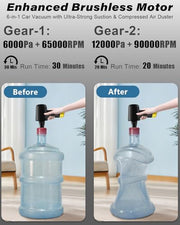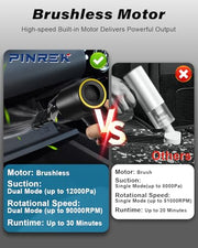- 【12000PA Strong Suction Power & Low Noise 】Equipped with a upgraded brushless motor, this mini vacuum provides 2 levels of suction power: Eco-6KPa and Max 12KPa. effortlessly overcoming cleaning challenges. Additionally, advanced noise reduction technology ensures a noise level of less than 78 decibels, minimizing disturbance during use.