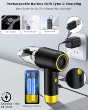 - 【Rechargeable Battery & Type C Charging】With a built-in 4000mAh battery and convenient Type C charging, this car vacuum cleaner wireless can be easily charged using various USB port devices such as a car charger, mobile power, or laptop. After a swift 2.5-hour full charge (5V/2A adapter recommended, but not included), enjoy up to 30 minutes of continuous cleaning while saving both money and time.