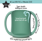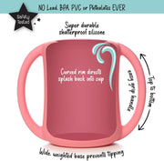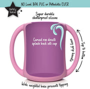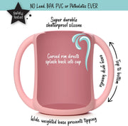 Unique splash rim directs liquid back into the cup as unsteady little hands learn to maneuver