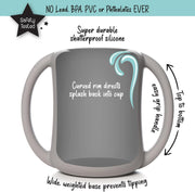 Top to bottom handles allow child to position their hands where it’s most comfortable, around the cup or along the handles