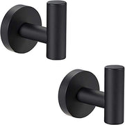 QNIIAED Bathroom Towel Hook, 2 Pack Back of Door Hooks Screw in Metal Stainless Steel Hanger for Coat,Robe,Clothes (Matte Black)