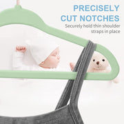 The soft velvet flocking helps clothes maintain their shape. The textured fabric and precisely-cut shoulder notches secure strappy tanks, shirts and dresses with ease. The velvet flocked pant bar is designed to grip and prevent creasing, leaving their denim jeans, dress pants and skirts in place and no longer wrinkled on the closet floor.