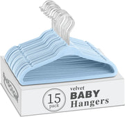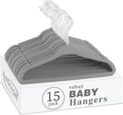 Red Dot Gift® 15-Pack Baby Velvet Hangers 11Inch - Nursery Clothes Hangers Non Slip Toddler Hangers, 360 Chrome Swivel Hook (Pink)