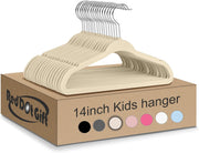 Red Dot Gift® 30-Pack Beige Velvet Kids Hangers - ( 35cm / 14 Inch )Premium Childrens Hangers for Closet, Ultra Thin Cute Hangers Kids Clothes Hanger,Small Hangers for Kids Clothes (Beige, 30)
