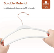 Lightweight, sturdy design: Durable yet lightweight. Stylish yet practical. Our flexible children's hangers feature a shiny chrome hook with 360-degree swivel, which will not rust. Not only are they attractive, but our clothes hangers can hold up to 5 pounds, making them ideal for hanging everything as your child grows, from puffy winter coats to school uniforms to strappy summer dresses.