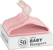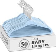 Red Dot Gift® 50 Pack Baby Velvet Hangers 11Inch/28cm - Nursery Clothes Hangers Non Slip Toddler Hangers, 360 Chrome Swivel Hook (White, 50)