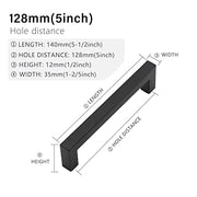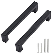 Redunest Cabinet Pulls Matte Black Cabinet Handles Square Drawer Pulls, 10 Pack 5 Inch Stainless Steel Kitchen Door Cupboard Cabinet Handles, Drawer Hardware Handles, 128mm Hole Centers