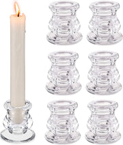 REVHQ 6pcs Glass Candle Holder Taper Glass Candlestick Holders 2.2 inch Tealight Candle Holder Clear Glass Candleholder for Table Centerpieces, Wedding Decor and Dinner Party