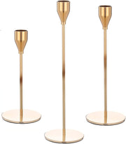 REVHQ Gold Candle Holders,Set of 3 fit for 3/4" Tall Taper Yellow Gold Candlestick&Led Modern Metal Candles, Elegant Stands Decorative Table Centerpieces for Dinning Party Church,Decorative Fitting