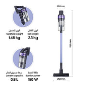 Samsung Jet 60 Cordless Stick Vacuum Cleaner with More Advanced Cleaning Performance, Violet, Light and Powerful, VS15A6031R4/SG, 1 Year Warranty (UAE version)