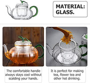 SYOSI Glass Teapot with Infuser Stovetop Tea Kettle for Loose Leaf Tea Kung Fu Glass Teapot Tea Maker Stovetop Safe Glass Teapot with Lids Handle for Home Office, 600ml