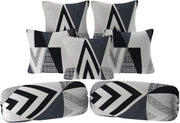 TIB Presents Flannel Warm Diwan Cover Set, 1 Single Bedsheet (60 x 90 inch), 5 Pillows (16 x 16 inch), 2 Bolster Covers (16 x 32 inch) (Triangle Black)