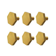 Tokatuker 6-Pack 30mm(1.2") Solid Brass Knob Simple Chamfered Hexagon Kitchen or Furniture Cabinet Hardware Drawer Handle Knob, Brushed Brass (1.2" Hexagon)