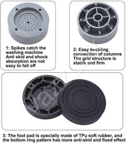 UNIVERSAL SIZE & MULTI-APPLICATIONS: This is an anti-vibration & anti-slip pad with shock absorber suction cup. Suitable for most washing machine, dryer, refrigerator, table, sofa, bed and other furniture on the market.