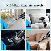 - [Various Accessories] Air blowing pipe for compressed air dusters, a long suction nozzle, a brush suction nozzle, a floor brush for mini vacuum, which cleans easily corners or untouchable place. Different cleaning accessories meets different needs, making cleaning easier. Car vacuum has suction up to 8000PA, which is enough to meet your cleaning needs for dust, hair and some difficult-to-clean debris in the car or home. Otherwise, the filter is washable and can be reused after drying.