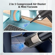 - [Dust Busters Cordless Rechargeable] The air duster of lightweight and wireless design can take to everywhere to meet your cleaning needs from room to room without having to unplug and re-plug. With a built-in 4000mAh battery, it provides 30 minutes of continuous cleaning on a single charge. Type-C fast charging and USB fast charging port for higher compatibility, can charge from various power sources, such as car charger, a computer, power bank, car charger, or adapter.