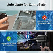 - [Substitute for Canned Air] Cordless, reusable and long-lasting, 52000 RPM compressed air dusters is a perfect alternative to canned air for the cleaning task at home or car. It is more energy-efficient and environmentally friendly compared to constantly buying canned air.