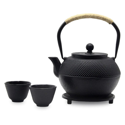 Cast Iron Teapot Set: Serve warm loose leaf tea to up to 2 people with this cast iron tea set comes with 1 cast iron tea pot, 1 trivet, and 2 cast...