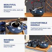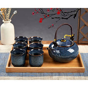 DUJUST Japanese Tea Set for 6, Kiln Altered Glaze Porcelain Tea Set with 1 Teapot, 6 Tea Cups & 1 Tea Tray, Unique Chinese Tea Sets for Adults/Tea Lovers/Women/Men, Blue