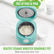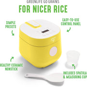 GreenLife Healthy Ceramic Nonstick 4-Cup Rice Oats and Grains Cooker, PFAS-Free, Dishwasher Safe Parts, Black
