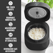 SIMPLE PRESETS: White Rice, Brown Rice, Quinoa, Steel Cut Oats—perfect every time!