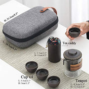 TOLOG Travel Chinese Kung Fu Ceramic Teapot Portable Handmade, Teapot Teacups All in One Gift Bag for Adults (purple clay tea sets 3)